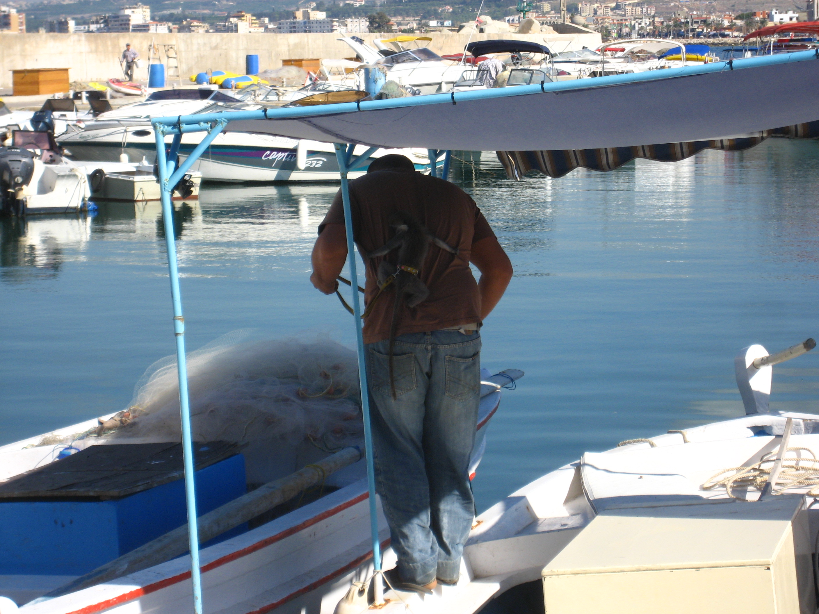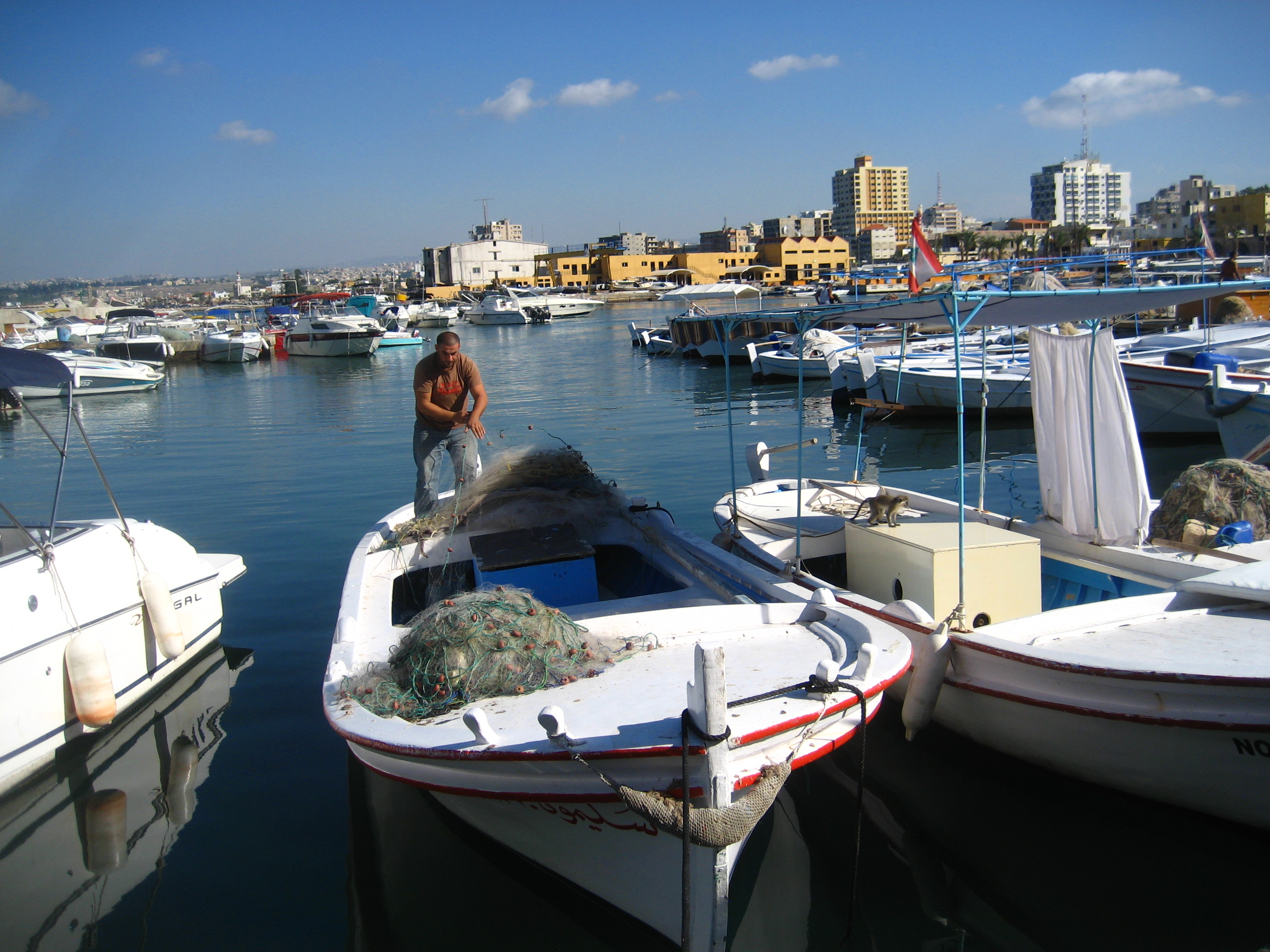 There was a sea wall that protected a marina area that was home to many small fishing boats. Nets were piled on the sterns of many of the boats, or piled along the docks just behind the boats. This was a working marina, if you will. I noticed one man sitting in his boat working on one of his nets. He had white hair pulled back tightly into a short ponytail and was shirtless, revealing his weathered, overly tanned skin. It struck me as I watched him concentrating on a portion of fishing net on his lap how that might have been Peter’s exact position when Jesus walked up and asked Peter to join him. (When the school principal saw me looking at the white-haired fisherman he told me about how this fisherman was so distinctive that when documentaries are made about Tyre, as National Geographic did, the film makers always want scenes that include this man.)